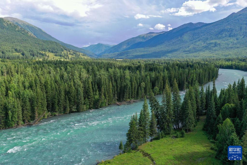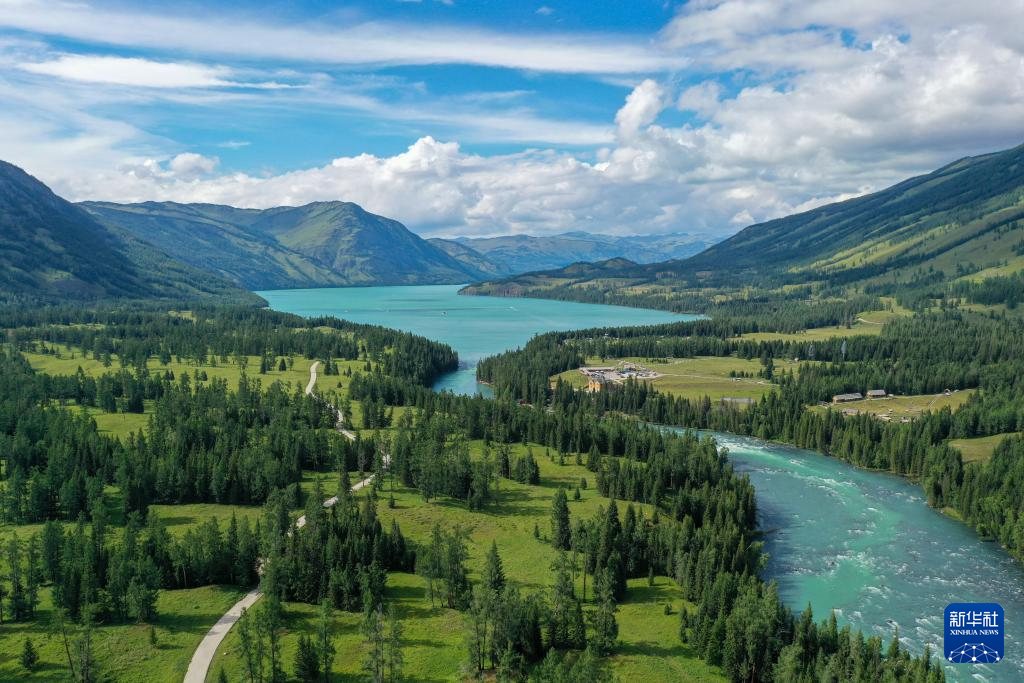 7月22日拍摄的新疆阿勒泰地区喀纳斯景区(无人机照片)。