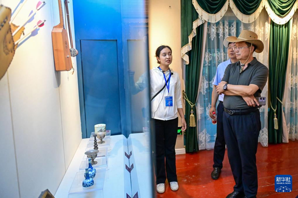 游客在新疆塔城市首家民俗文化家庭博物馆参观(7月24日摄)。