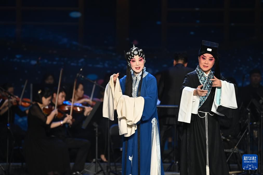 7月30日,演员在《陕西地方戏曲音乐联奏》中表演曲牌与摇滚。