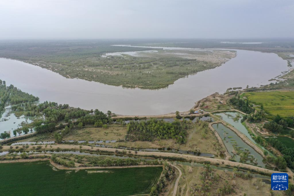 这是在新疆阿克苏地区沙雅县拍摄的塔里木河。几字形的回水湾,距离最近的农田不足50米(8月3日摄,无人机照片)。