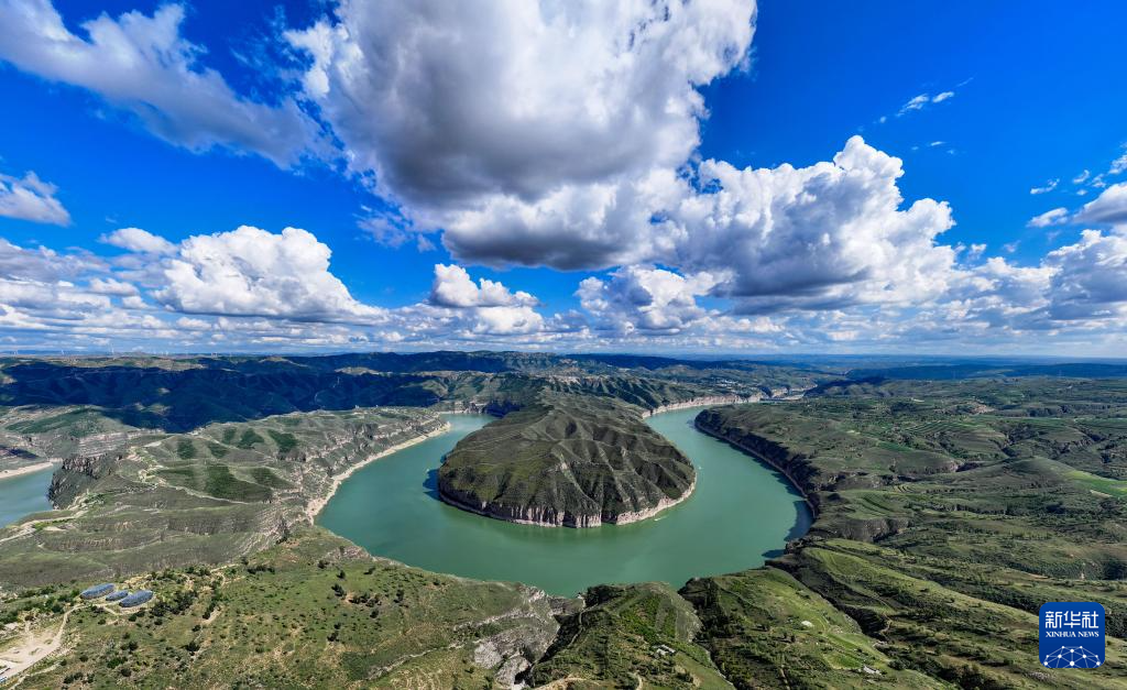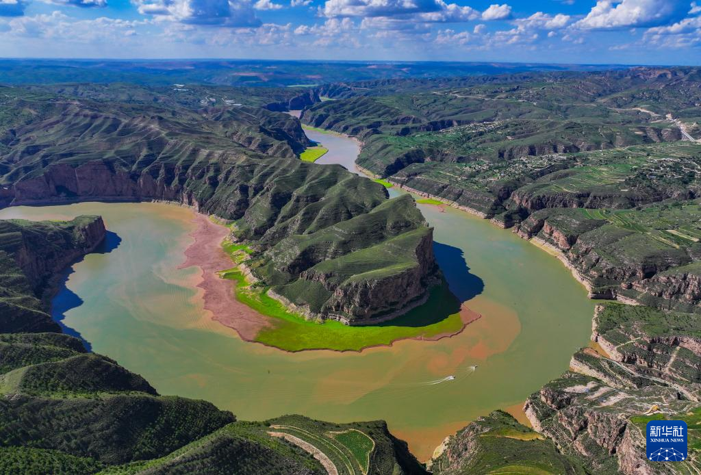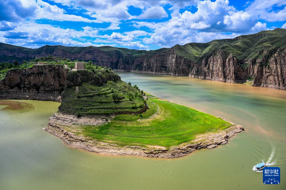 这是8月12日拍摄的黄河老牛湾风光(无人机照片)。
