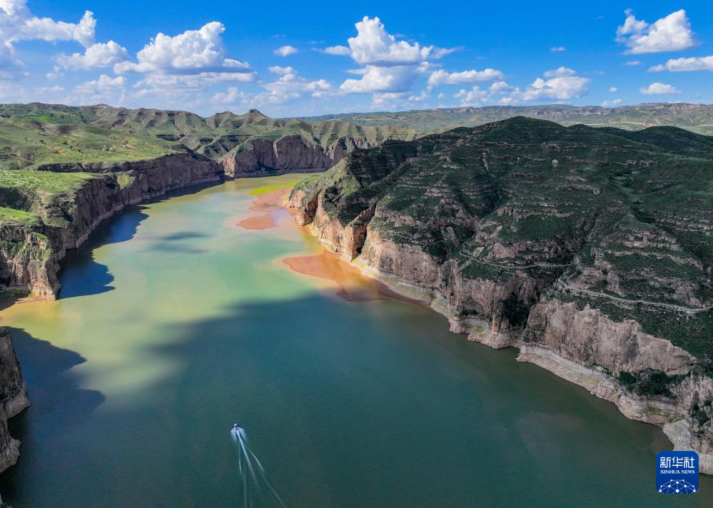 这是8月12日拍摄的老牛湾北侧的一处黄河峡谷(无人机照片)。