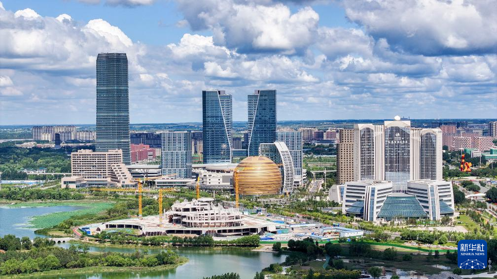 8月27日拍摄的长春新区北湖未来科学城(无人机照片)。