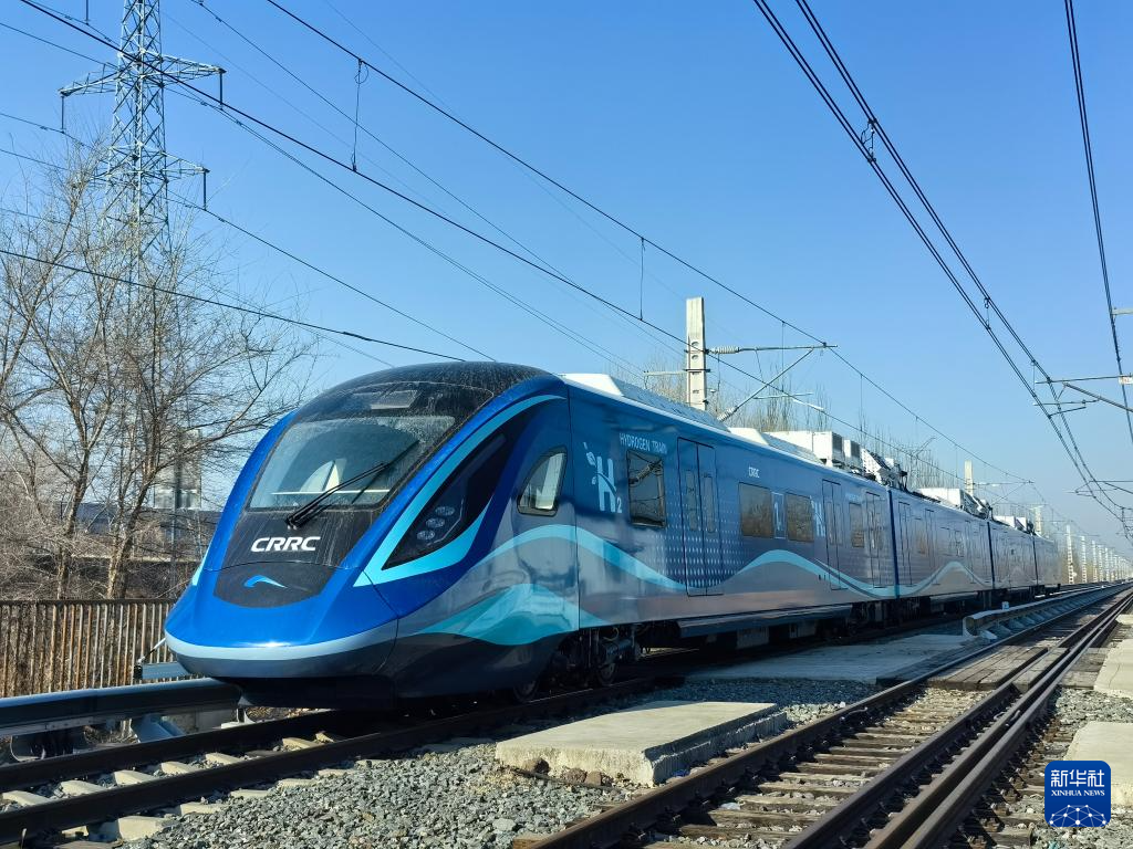 我国首列氢能源市域列车在位于长春的中车长客试验线进行运行试验(3月21日摄)。