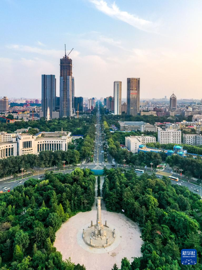 8月24日拍摄的长春市中轴线上的人民广场及人民大街(无人机照片)。