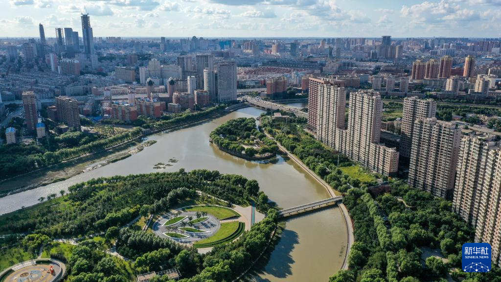 8月27日拍摄的长春市伊通河景色(无人机照片)。