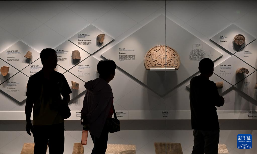 9月8日,在秦始皇帝陵博物院,观众观看“千古一帝的地下王国——秦始皇陵考古发现展”上展出的建筑构件。