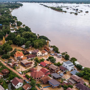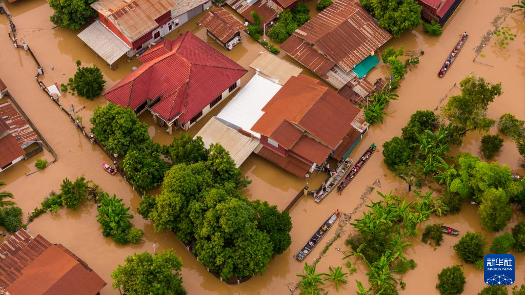 连日降雨导致湄公河水位上涨,老挝多地水位接近或超过警戒线,首都万象部分村庄被淹。
