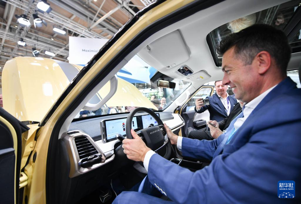 9月16日,在德国汉诺威国际交通运输博览会媒体预展上,一名男子体验上汽大通eTerron 9纯电皮卡车。