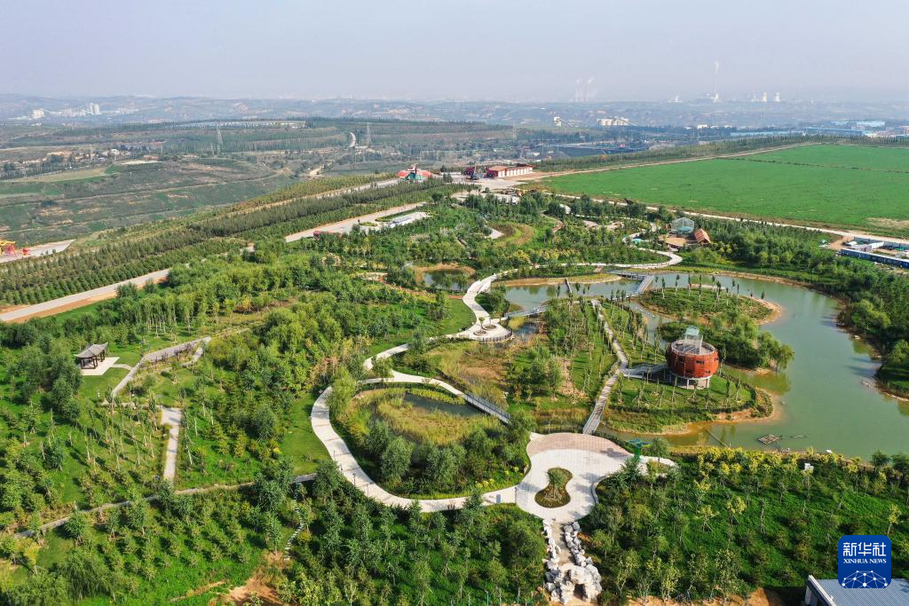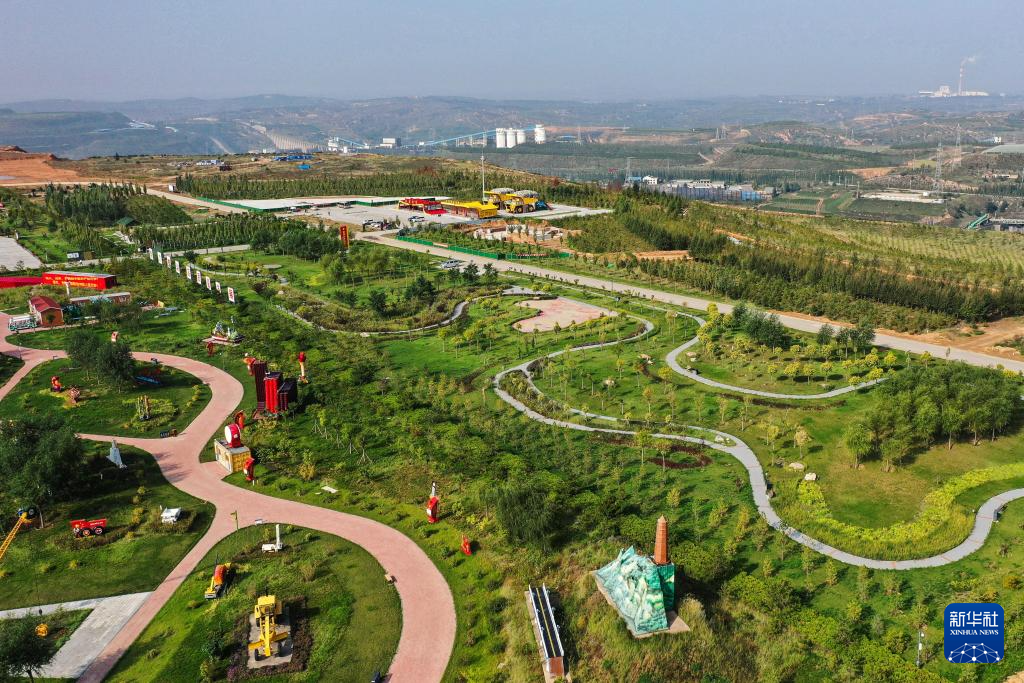 在位于内蒙古鄂尔多斯市准格尔旗的国家能源集团准能集团,煤矿复垦区树木葱茏,成为矿山生态旅游区(无人机照片,9月19日摄)。