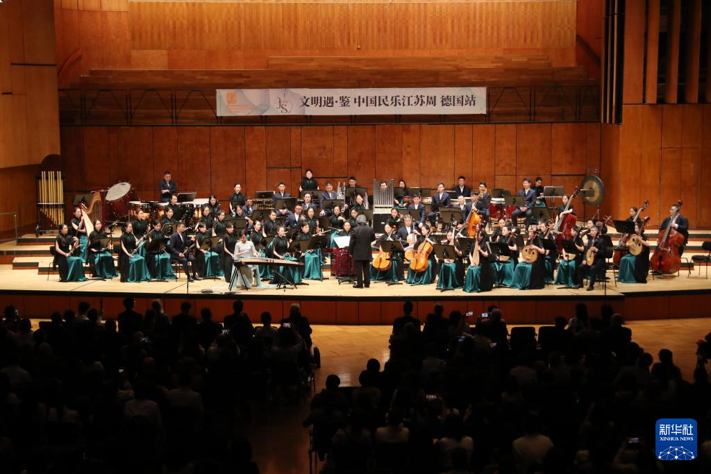 “文明遇·鉴:中国民乐江苏周”18日晚在德国巴登-符滕堡州斯图加特音乐厅开幕,中德两国艺术、文化、传媒界人士,以及当地观众等近千人参加了当晚的活动。