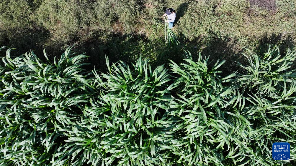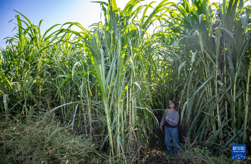 9月23日,工作人员在位于宁夏青铜峡市青铜峡镇沃沙村的宁夏荣林生态科技有限公司菌草示范基地查看菌草生长情况。该公司通过改良盐碱化土地,种植菌草反哺养殖业,取得良好成效。