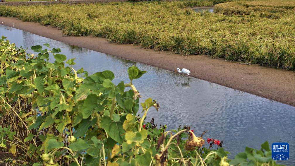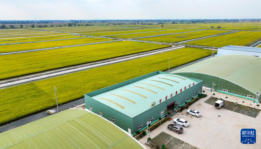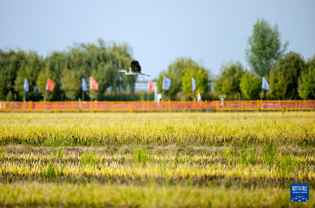 这是9月20日拍摄的宁夏银川市贺兰县立岗镇永兴村的花田香蟹稻田主题公园(无人机照片)。当地通过综合治理,将昔日荒芜、低产的盐碱地改良为稻蟹种养综合体。