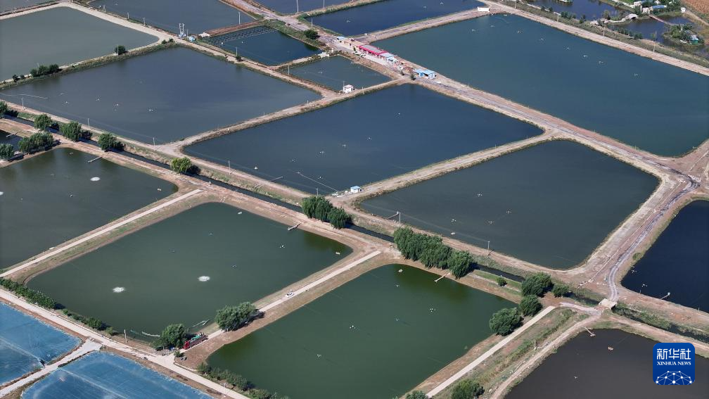 这是位于宁夏银川市贺兰县常信乡谭渠村的蓝湾生态园南美对虾养殖基地(9月19日摄,无人机照片)。昔日的盐碱地变为水产养殖的“聚宝盆”。