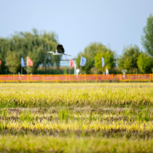 这是9月19日拍摄的位于宁夏银川市贺兰县常信乡四十里店村的稻渔空间乡村生态观光园。