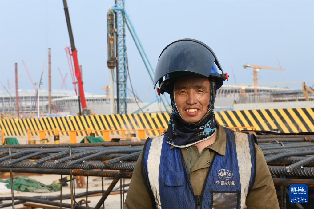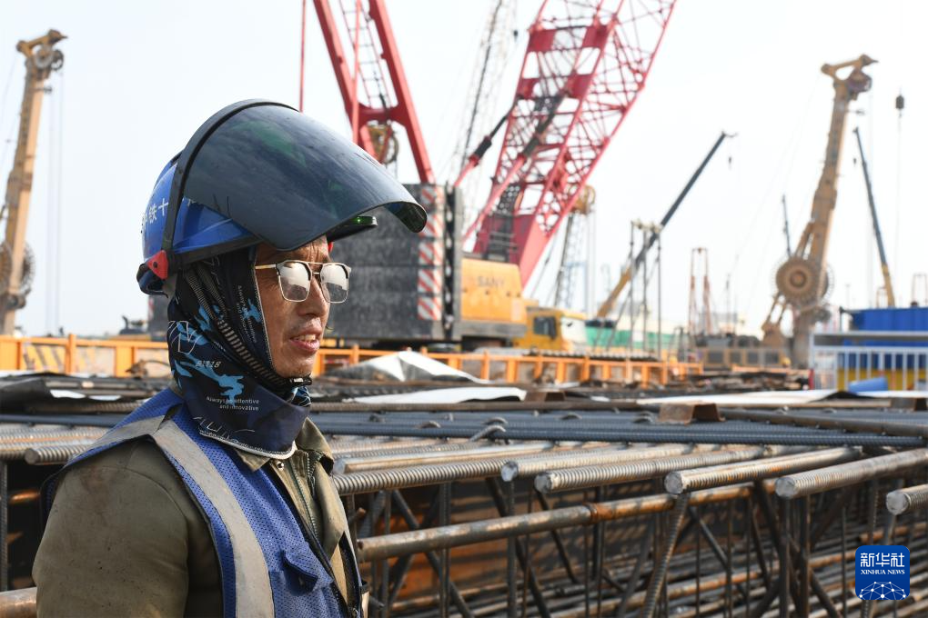 胡建国在粤港澳大湾区重点基础设施项目南珠中城际铁路的建设工地上(9月12日摄)。
