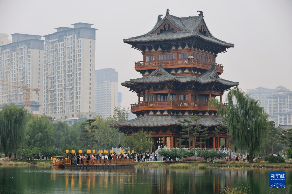 9月26日,游客在河北定州众春园游览。