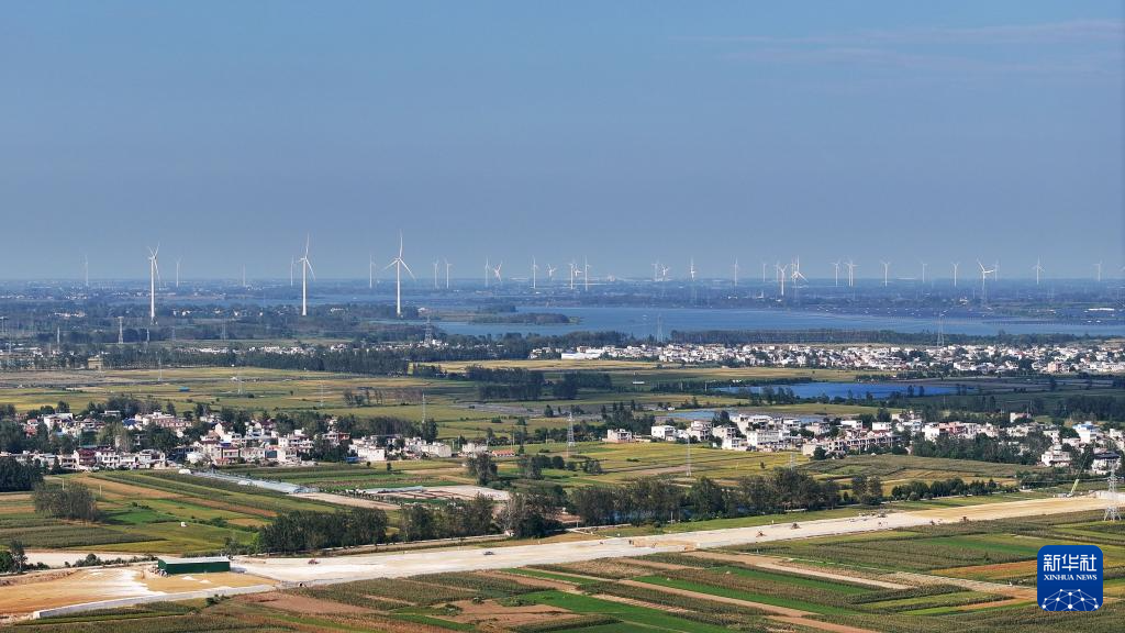 这是9月27日在蚌埠市五河县拍摄的风力发电设施(无人机照片)。