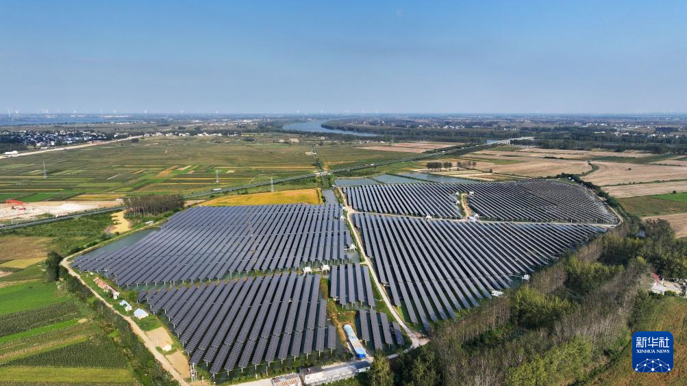 这是9月27日在蚌埠市五河县拍摄的光伏发电设施(无人机照片)。