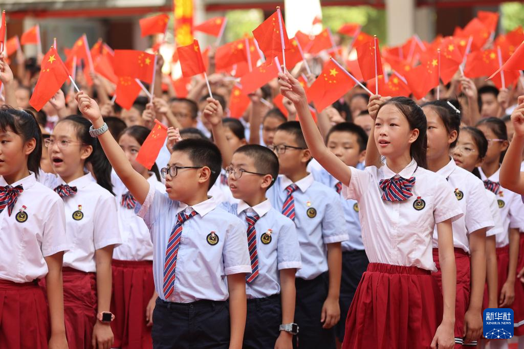 10月1日,在福建厦门五缘第二实验学校,学生合唱《我的祖国》。