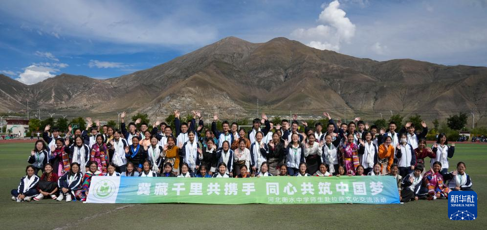 10月1日,河北衡水中学师生访问拉萨阿里河北完全中学,两校同学一起合影留念。