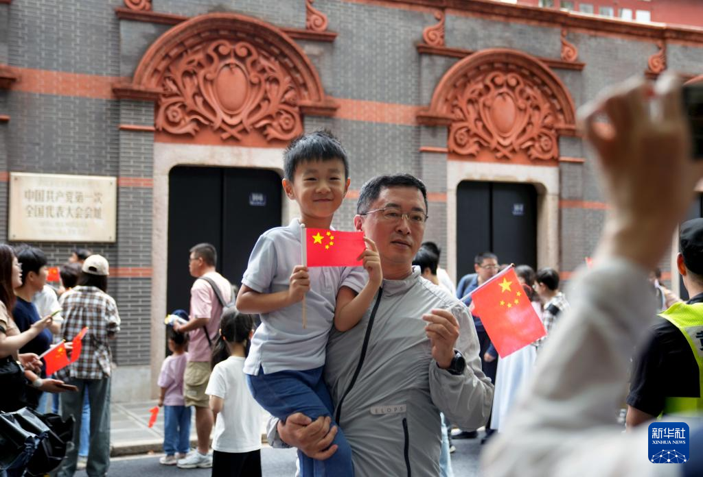 10月1日,市民游客在位于上海的中共一大纪念馆参观、留影。