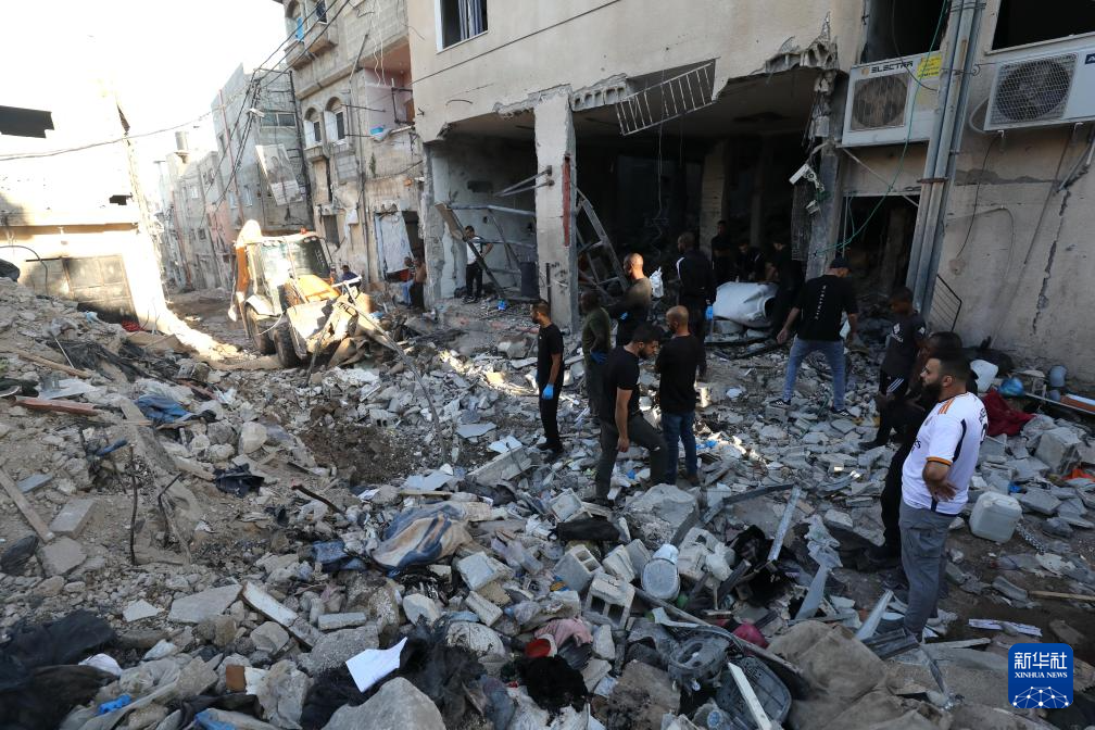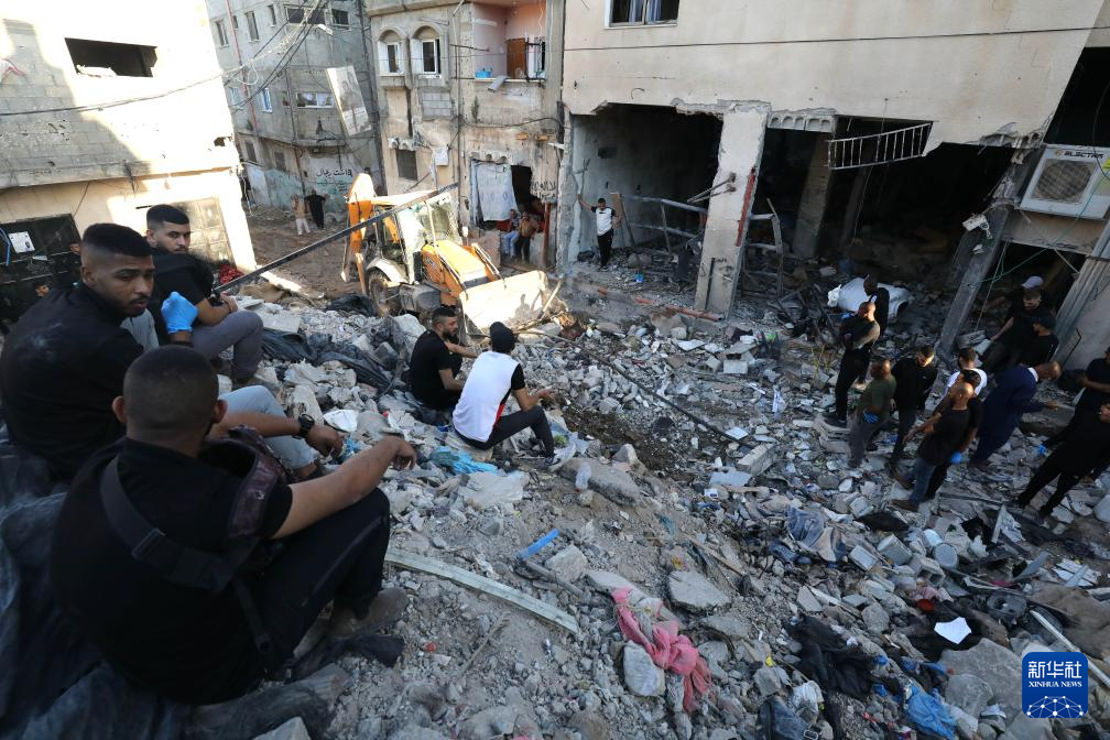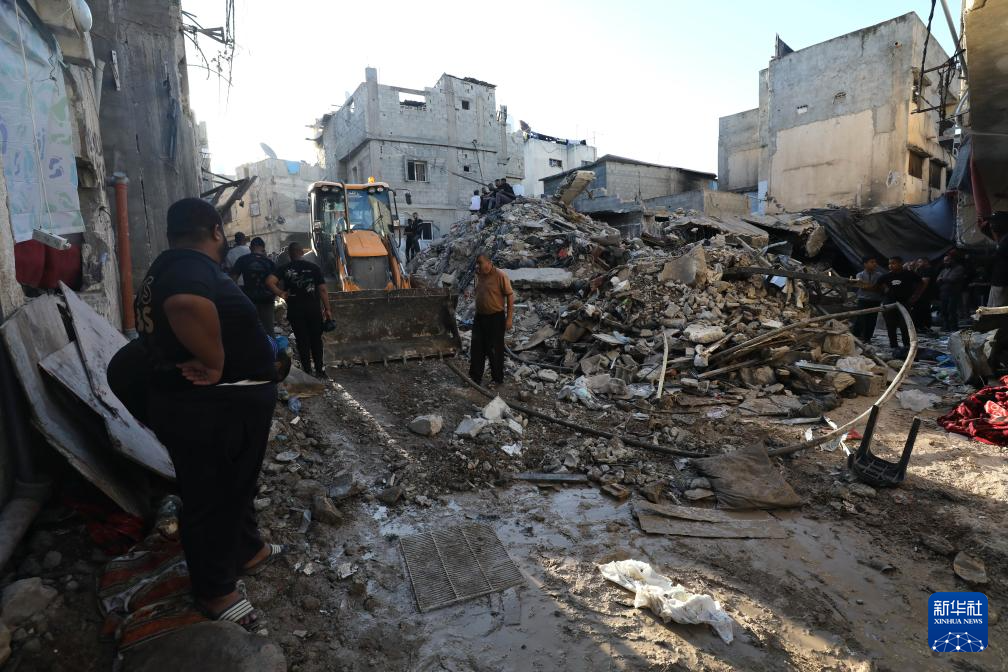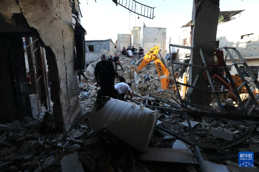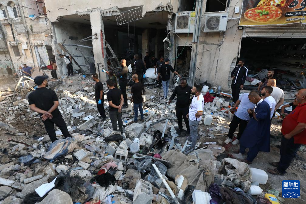 10月4日,在约旦河西岸北部图勒凯尔姆难民营,当地民众查看以军空袭后的废墟。