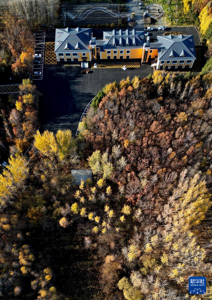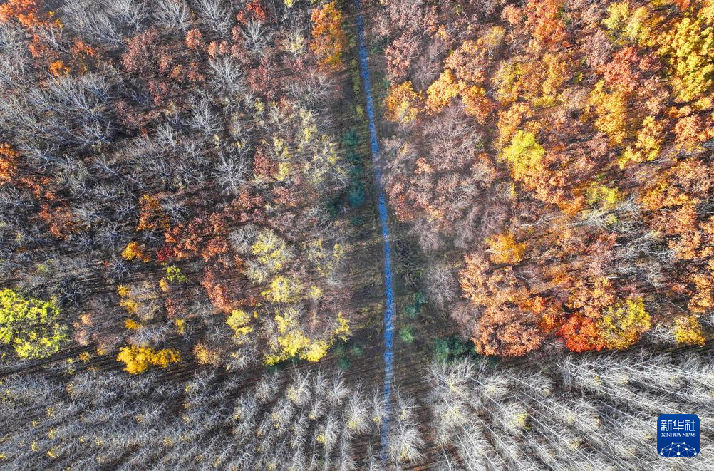 这是10月11日拍摄的同江三江口生态旅游区五彩斑斓的树林(无人机照片)。