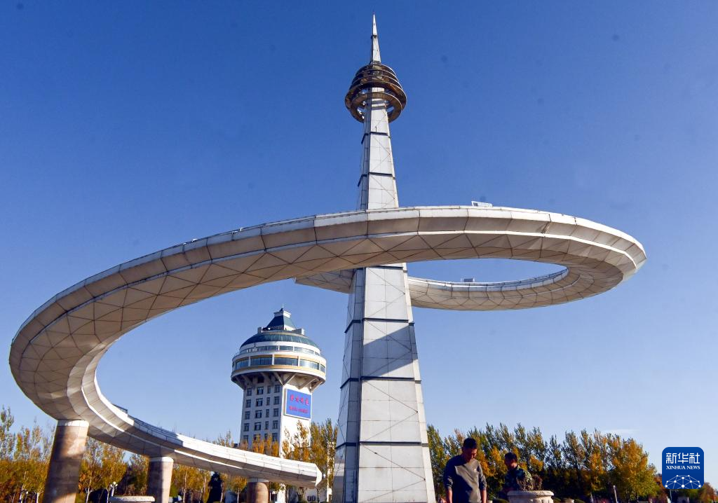 这是10月11日拍摄的同江三江口生态旅游区同三公路标志塔。