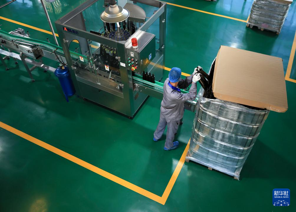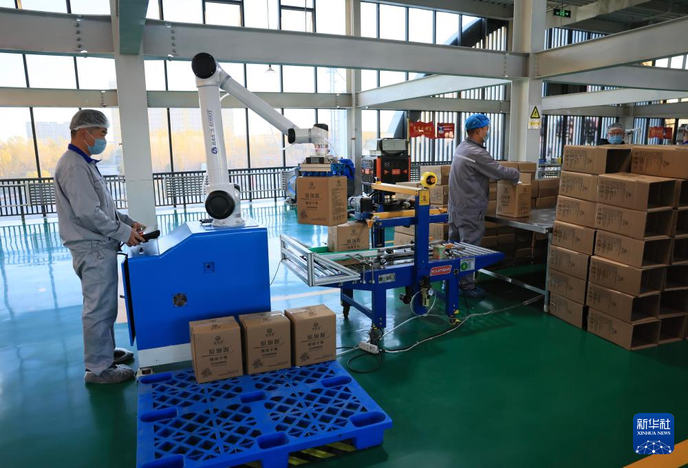 10月12日,工人在桦南县紫苏产业园的一家紫苏食品加工企业车间内忙碌。