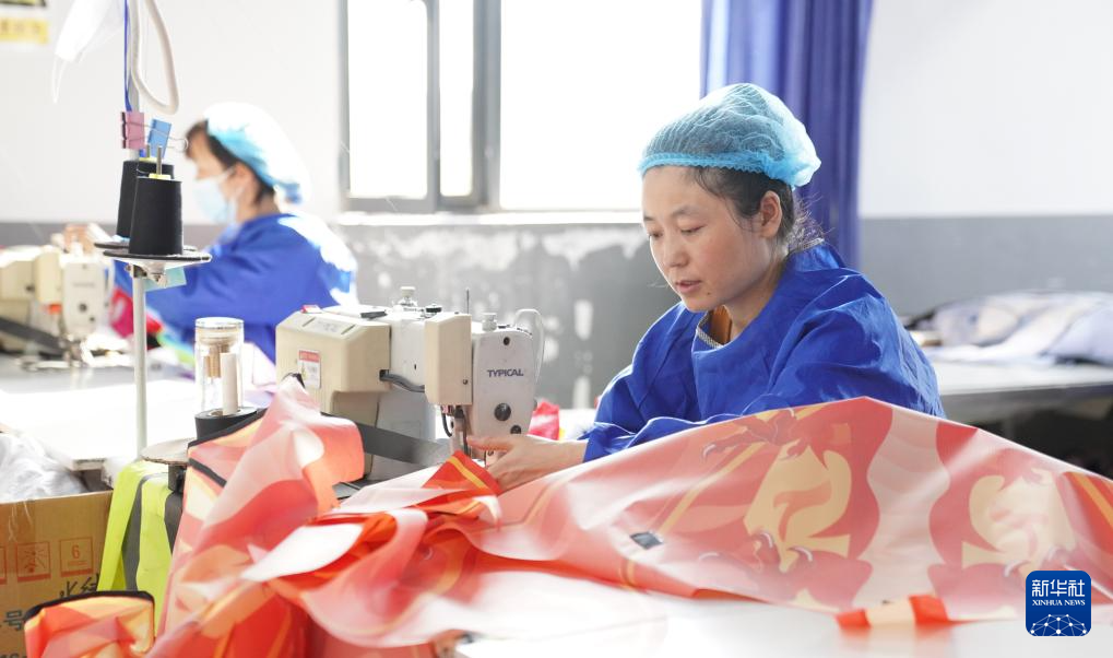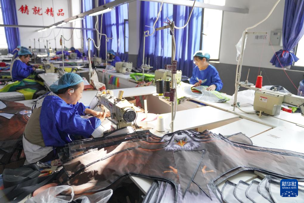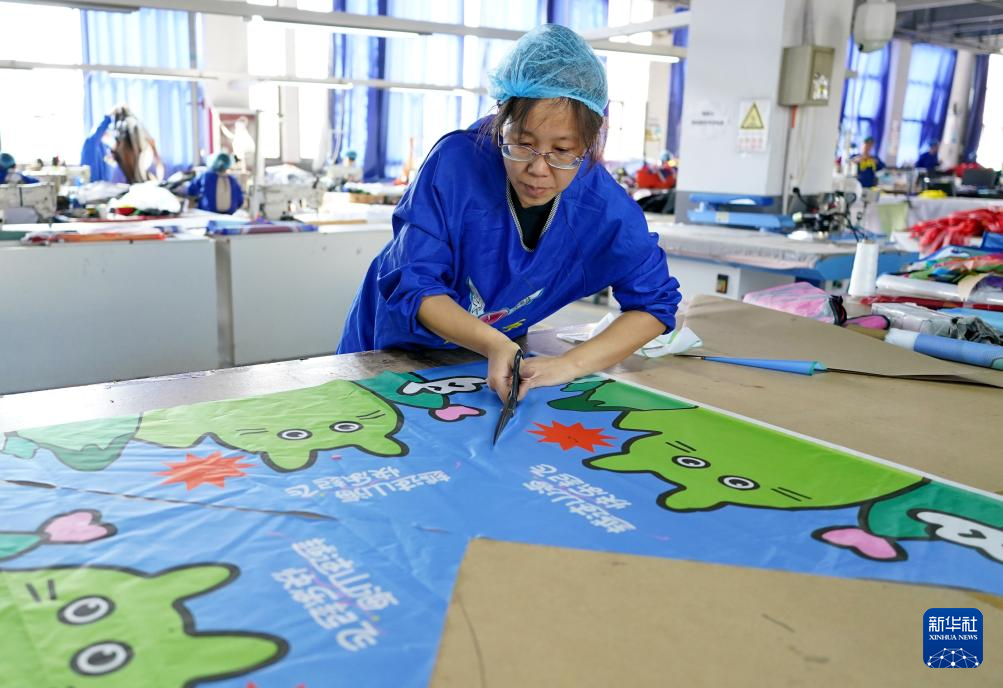 10月14日,在山东省潍坊市寒亭区的一家风筝生产企业,工人在制作风筝。