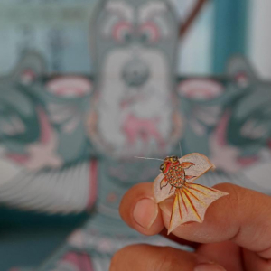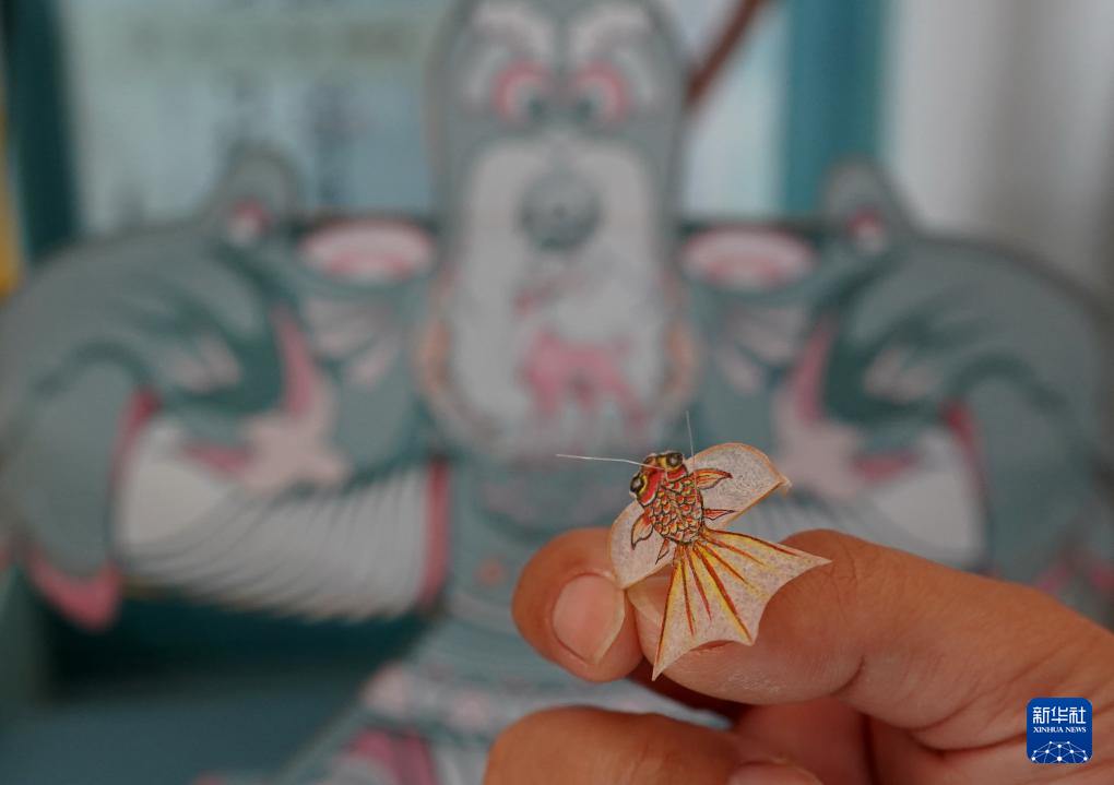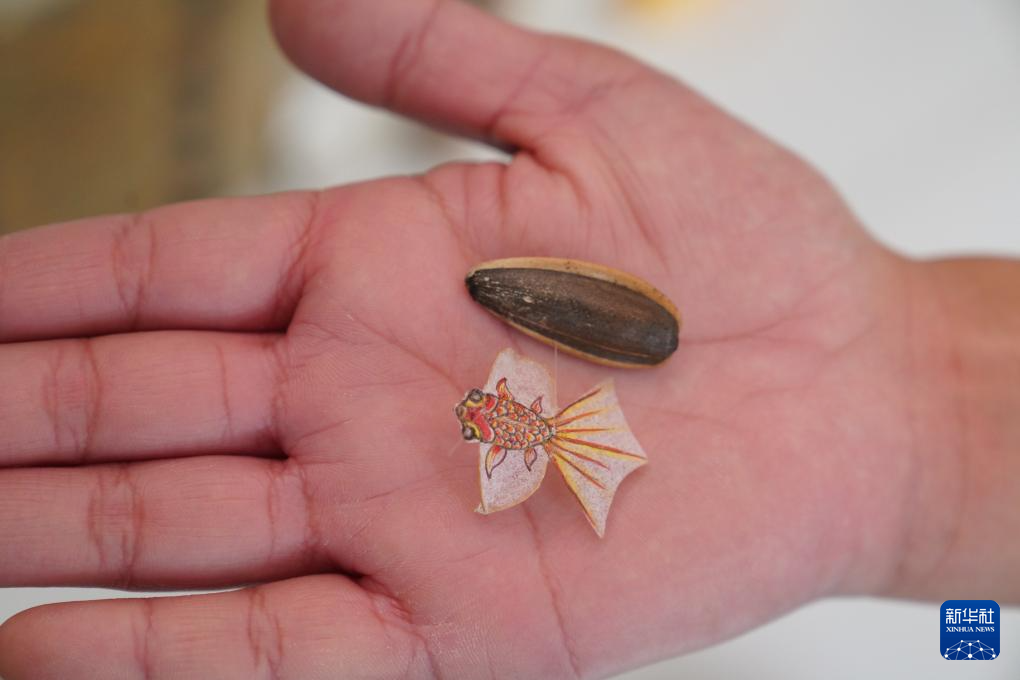 10月14日,在山东省潍坊市寒亭区的一家风筝作坊,工作人员在展示一款迷你风筝。