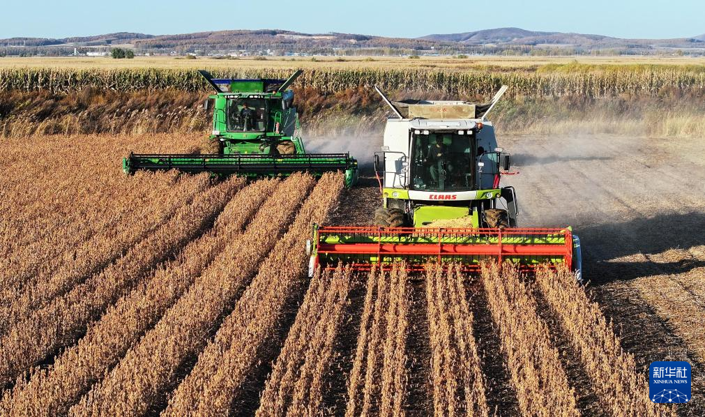 深秋时节,在产粮第一大省黑龙江,处处充盈着丰收的喜悦。黑土平原上,棒穗金黄,大豆“摇铃”,忙碌的农人和轰鸣的收割机共同构成了一幅丰收画卷。