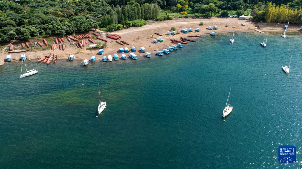 这是抚仙湖边的帆船基地一景(无人机照片,9月20日摄)。
