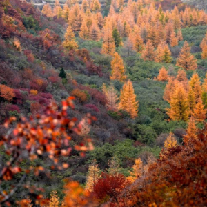 这是10月18日在宁夏固原市西吉县大寨山林场拍摄的秋景。