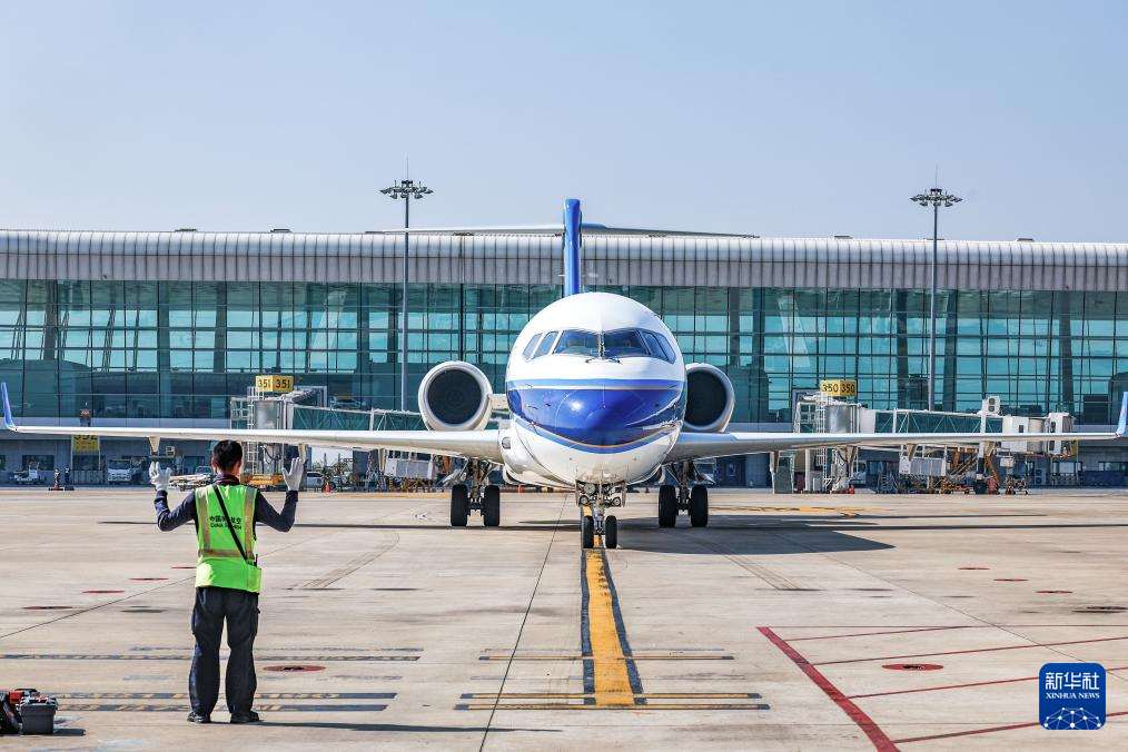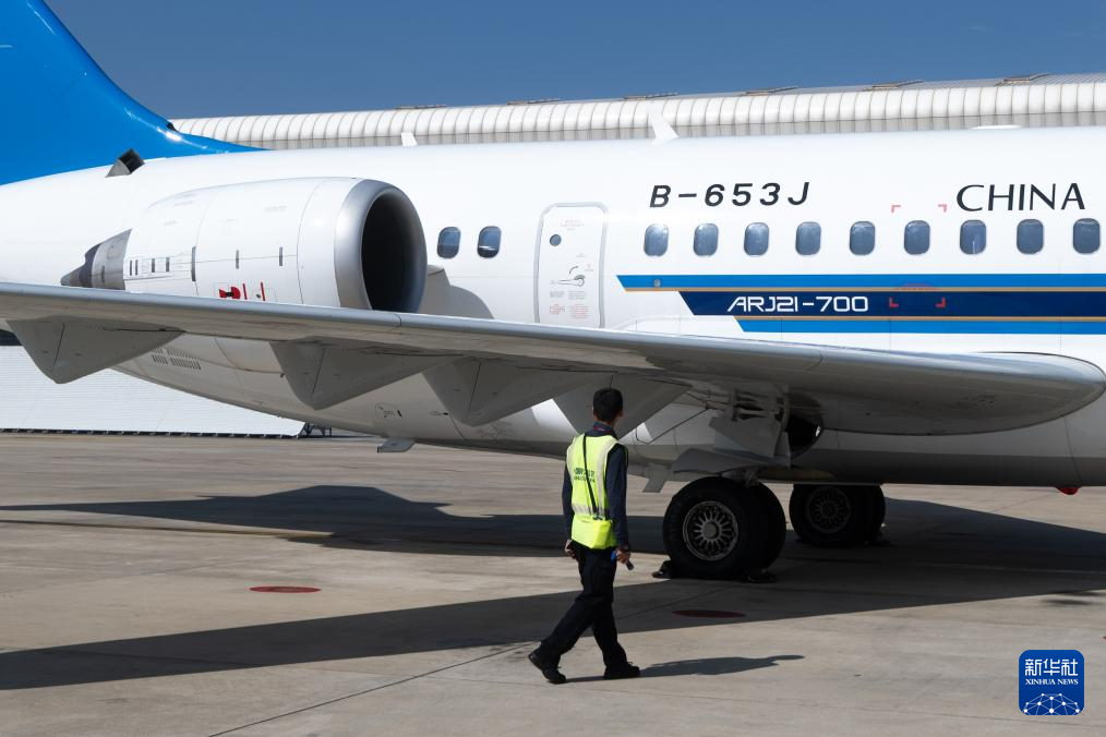 10月25日,国产商用飞机ARJ21在武汉天河国际机场停机坪上滑行。