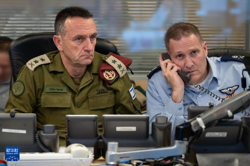 这张10月26日发布的照片显示,在对伊朗袭击期间,以色列国防军总参谋长哈莱维(左)坐在位于特拉维夫的国防军总部内。