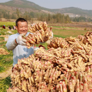 10月30日,山东省枣庄市市中区税郭镇农民在生姜种植基地收获生姜。