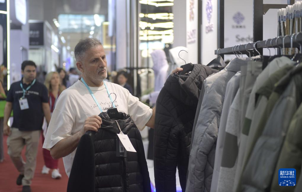10月31日,客商在广交会上参观选购服装。