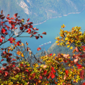 10月30日在重庆市巫山县巫峡神女景区拍摄的红叶映巫峡美景。