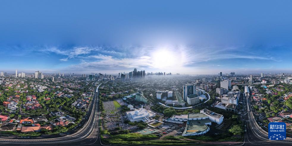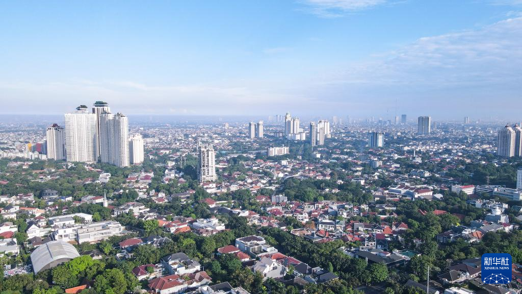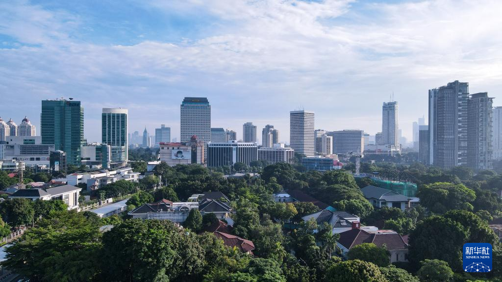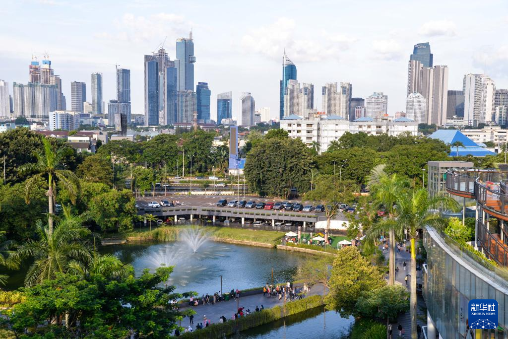 这是4月10日拍摄的印度尼西亚雅加达城市风光(无人机全景照片)。