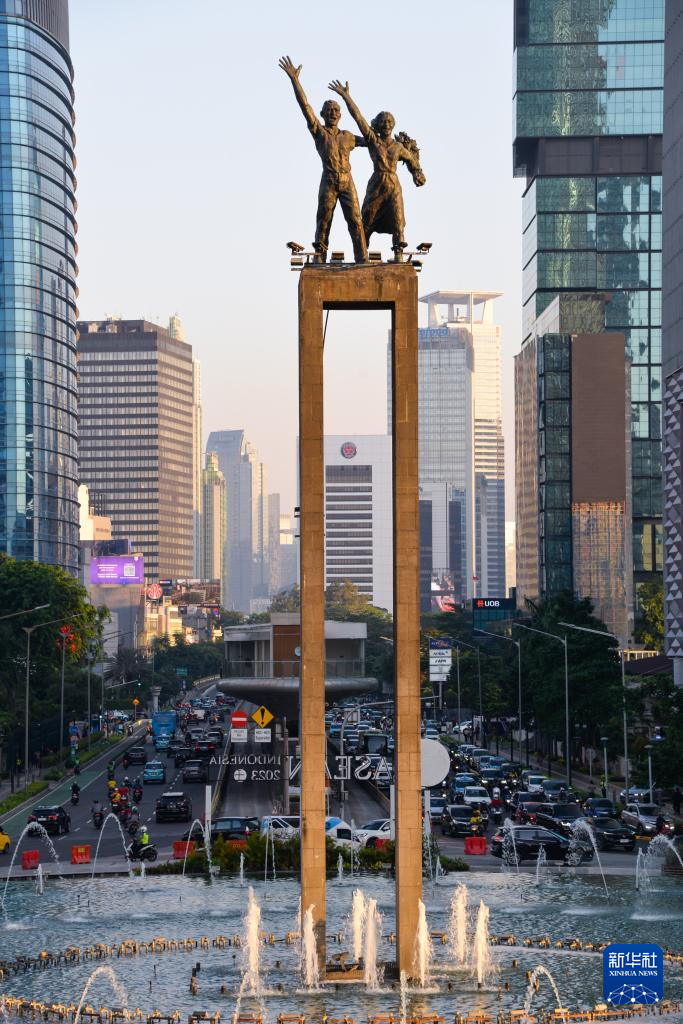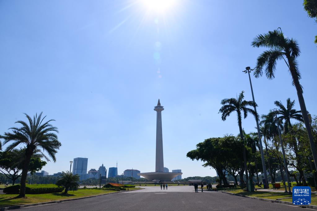 这是2023年7月18日在印度尼西亚雅加达拍摄的迎宾纪念碑。