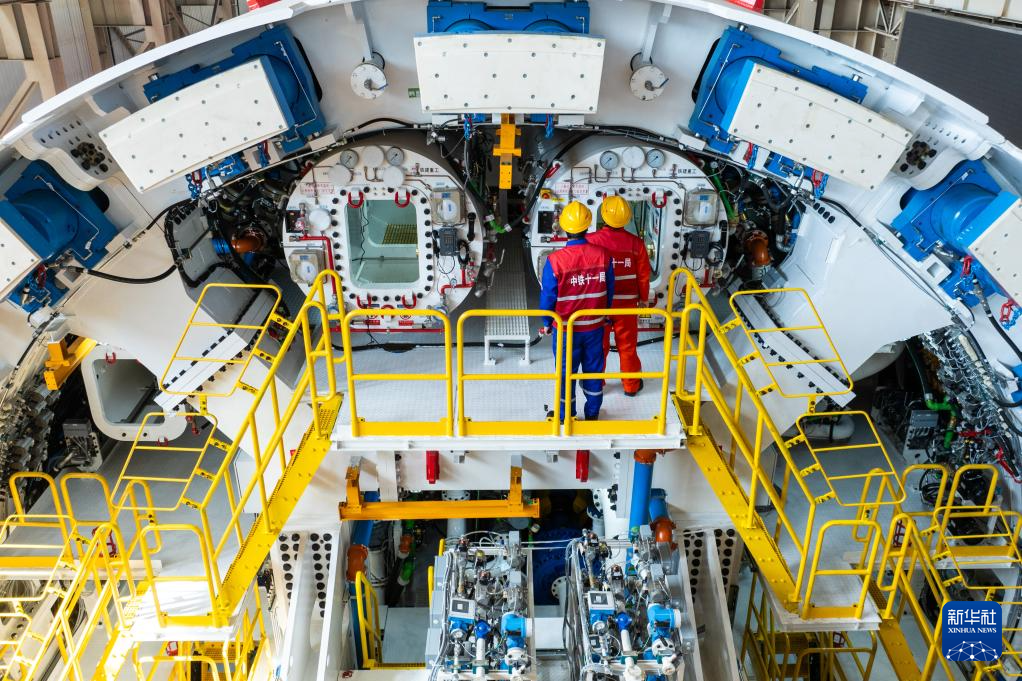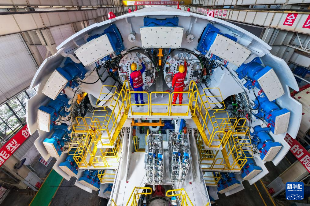 11月9日,在铁建重工长沙第一产业园,工人在调试“永庆号”盾构机。