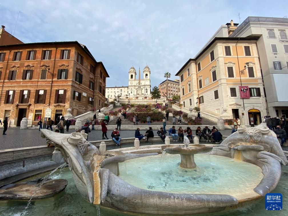 2021年4月21日,人们在意大利罗马的西班牙广场游玩(手机照片)。