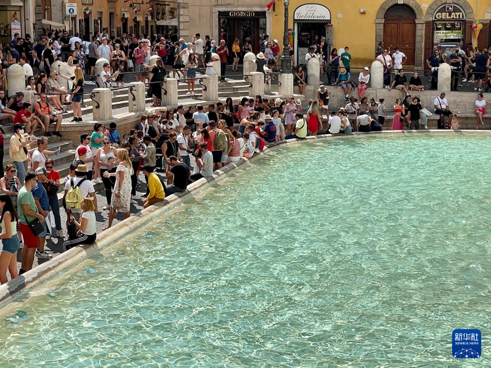 这是2021年8月25日在意大利罗马拍摄的罗马许愿池(手机照片)。