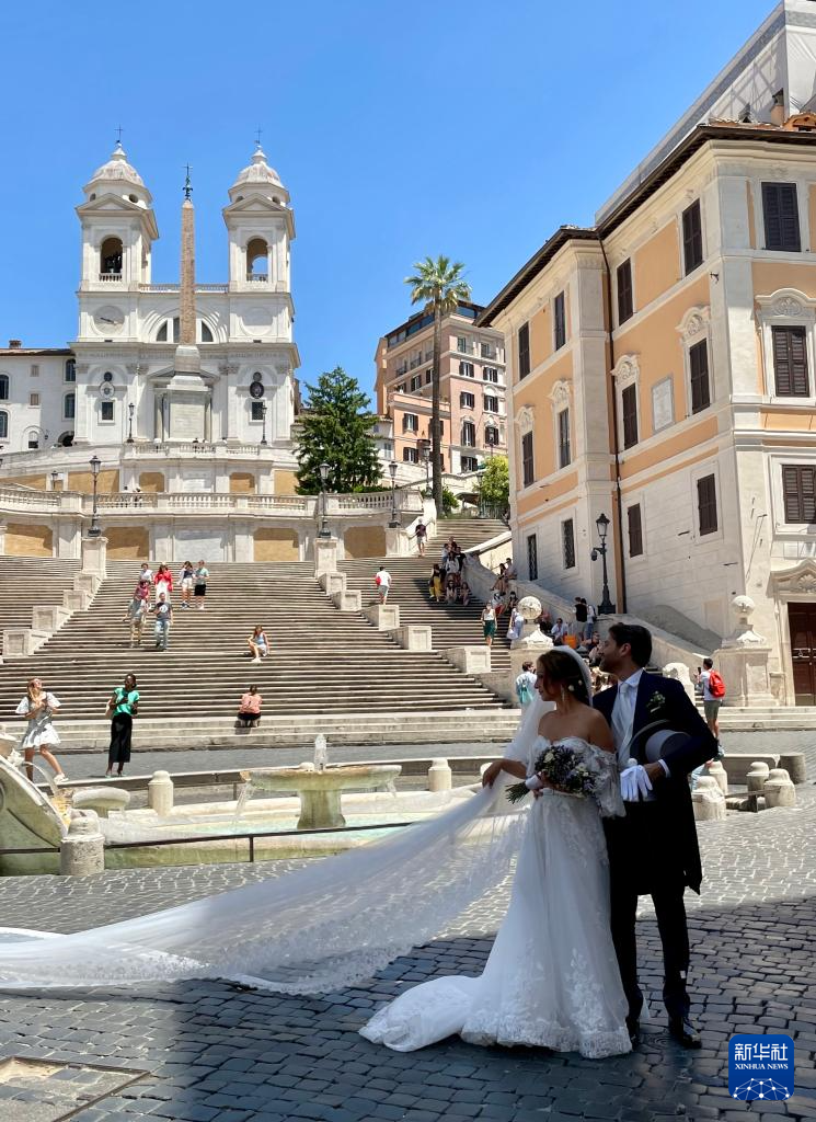 这是2021年6月27日在意大利罗马拍摄的西班牙广场(手机照片)。
