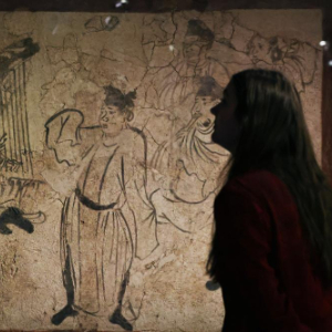11月18日,在位于法国巴黎的吉美国立亚洲艺术博物馆,一名观众参观“中国·唐——一个多元开放的朝代(7至10世纪)”展览。