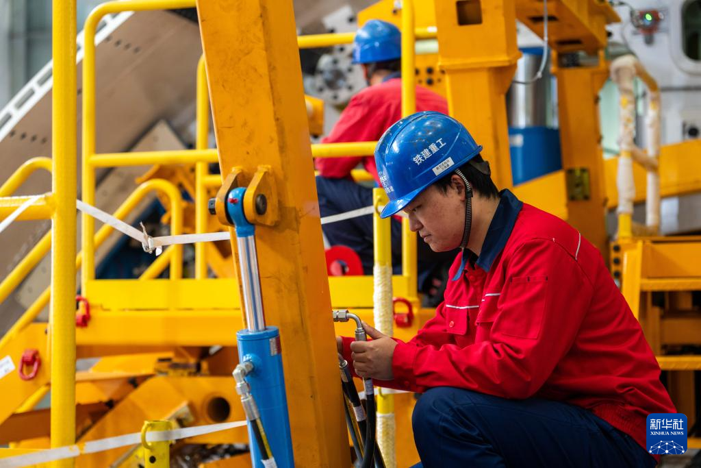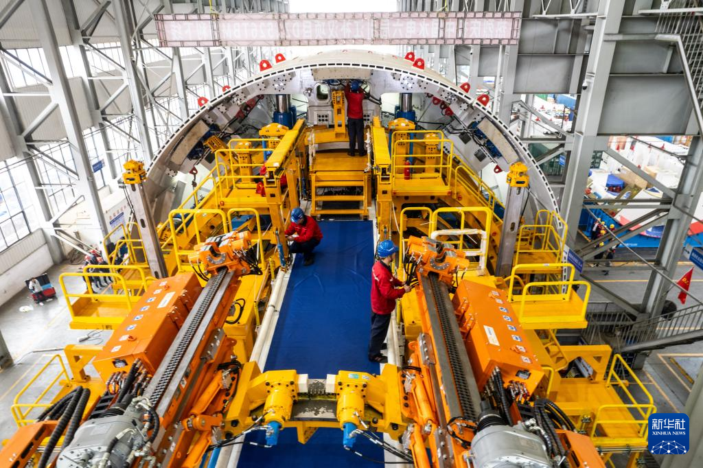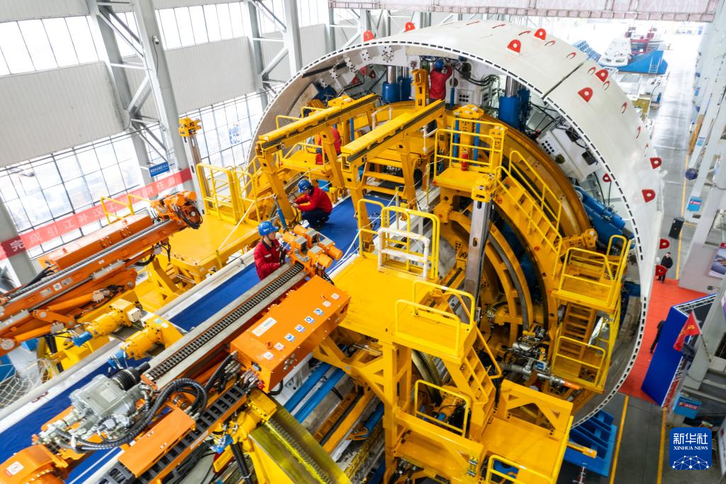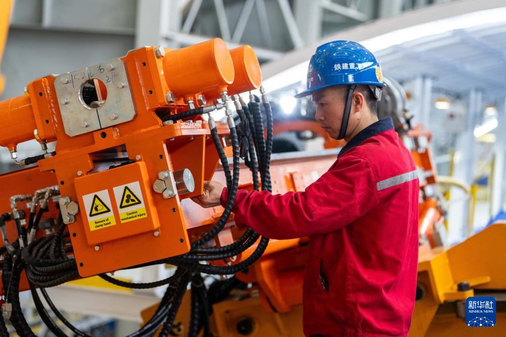 11月22日,在铁建重工长沙第一产业园,工人在调试“江汉新石器号”隧道掘进机。