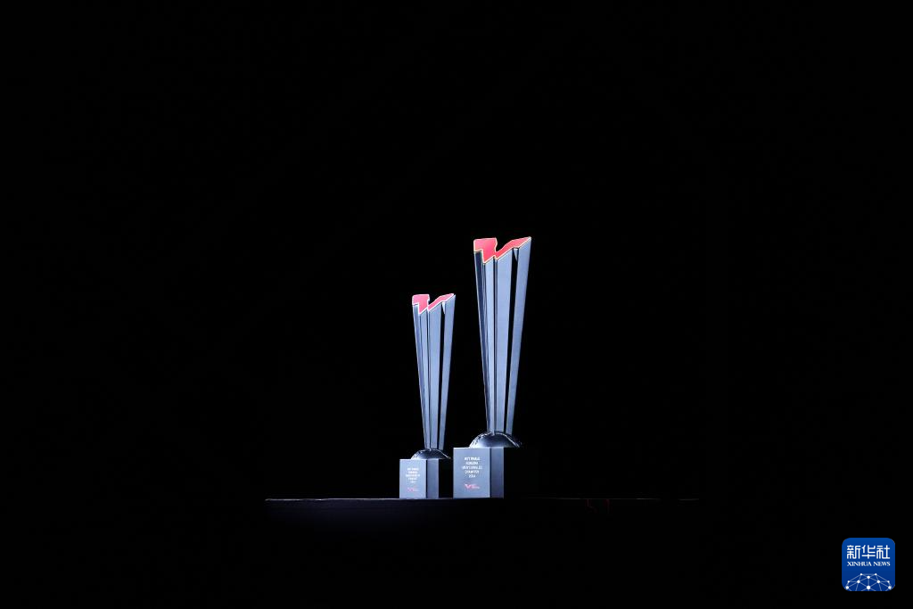 这是11月24日在男单决赛开始前拍摄的男子单打奖杯。