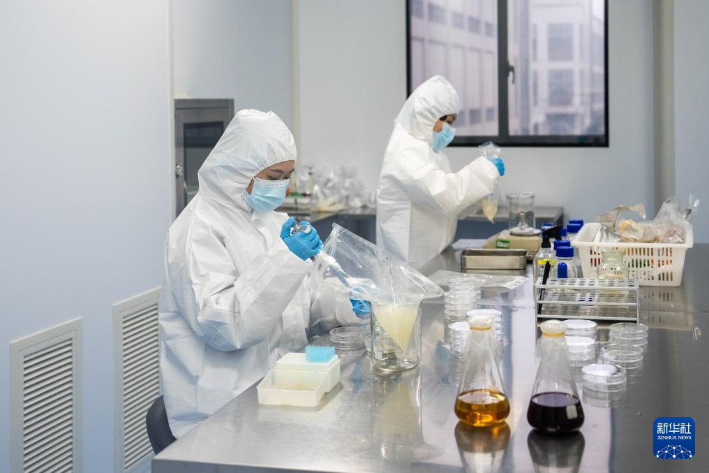 11月24日,在湖南宁乡经开区一家预制菜企业食品检测中心,工作人员在检测食品成分。
